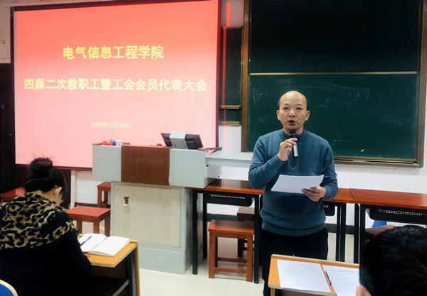 根据校工会《关于召开郑州轻工业大学2020年二级教职工代表大会的通知》要求,经过认真筹备,12月31日下午,电气与信息工程学院在教二楼西一阶教室召开了四届二次教职工暨工会会员代表大会。会议由学院党委书记张辉主持。