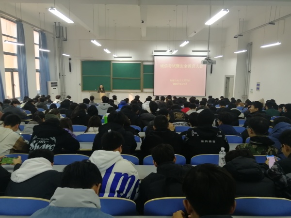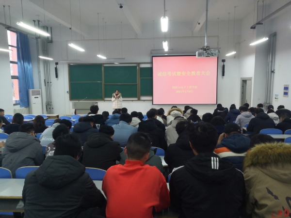 为严肃考风考纪,树立学生的诚信意识,切实做好假期期间学生安全教育管理工作,12月31日-1月4日,物理与电子工程学院分年级、分专业召开了诚信考试暨安全教育大会。