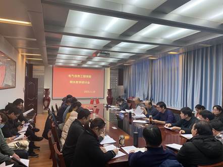 2021年1月14日下午,电气信息工程学院在西二楼301召了开期末教学研讨会。学院班子成员,各专业(中心)主任、副主任,教学质量监控员,院督导组组长,课程组组长等30余人参加了会议。会议由王延峰院长主持。
