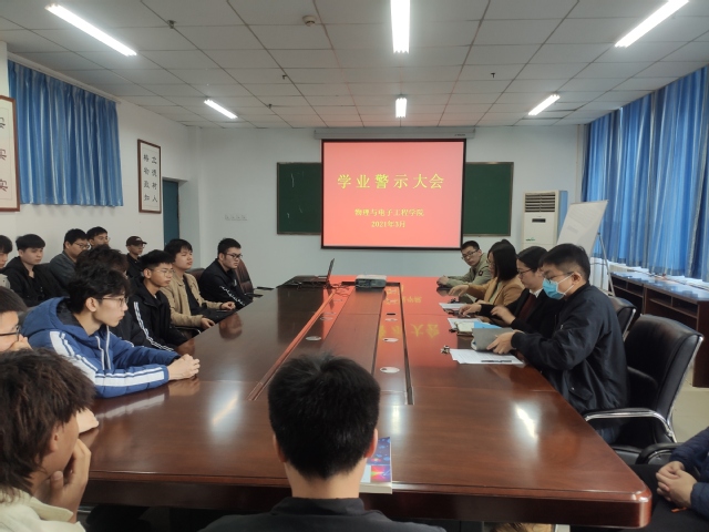 3月5日中午,物理与电子工程学院在四教楼510会议室召开了学业警示大会,学院党委副书记李玲、团委书记周芳华、学工办副主任王伟夙,不及格科目较多的本科生参加了此次会议。