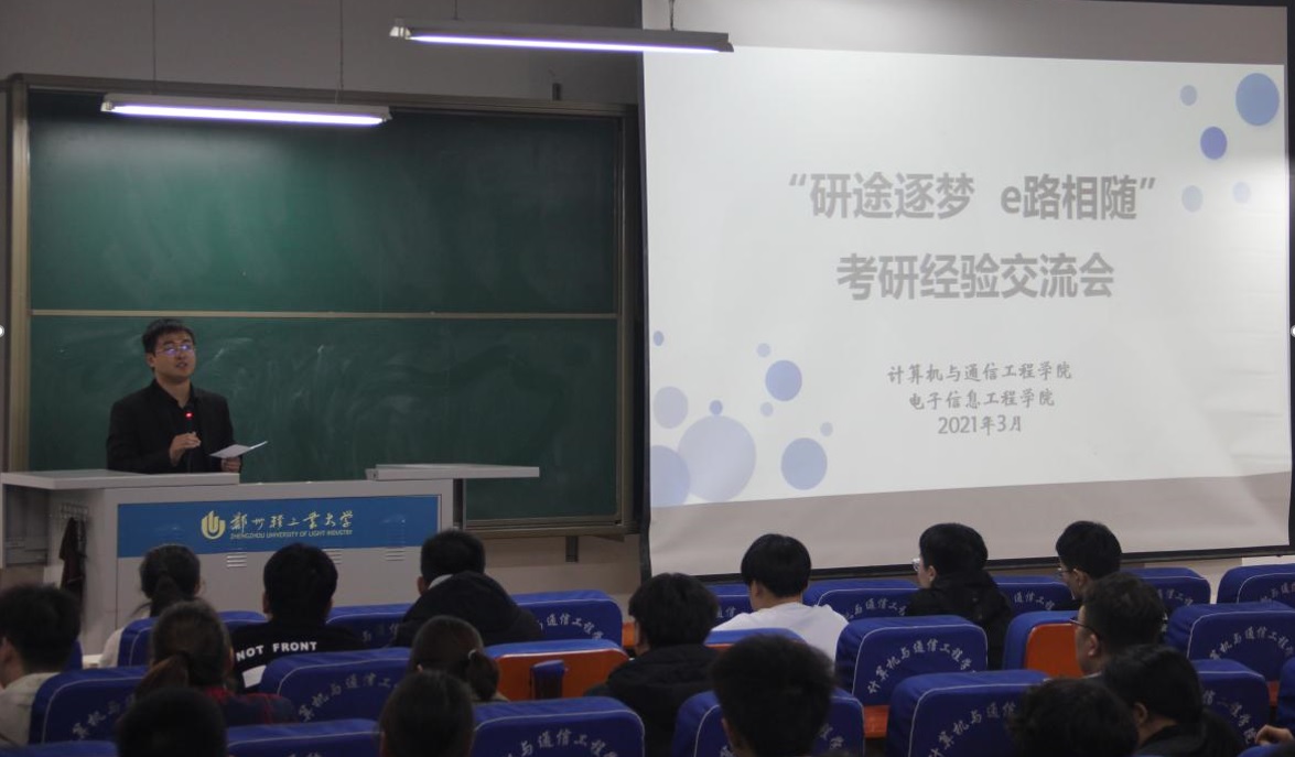 “以鹿为马,不负韶华”,为进一步提升我院2018级本科生的考研热情,了解更多的考研信息。计算机与通信工程学院研究生会于3月12日晚上在计算机楼217为2018级本科生举办了“研途逐梦---e路相随”考研经验交流会。院研学会指派优秀研究生代表参加本次会议,向同学们分享考研经验。启航考研的葛苗苗老师以及2018级全体本科生参会。