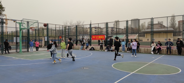 下午15:00,在做完热身运动后,比赛正式开始,首先进行的项目是趣味篮球赛,以班级为单位,男女混合组队的方式进行比拼。随着裁判哨声的响起,篮球被同学们带着在场上不断穿梭,一次次的进球,一声声的喝彩,让比赛变得异常激烈。接下来的项目是纸飞机大赛,同学们在现场制作以后在同一起点线飞出自己的纸飞机,距离最远者获胜,一个个纸飞机带着同学们的希望在空中滑过。现场气氛活跃,同学们在春风中做着游戏,感受着走出宿舍、走向操场的快乐。