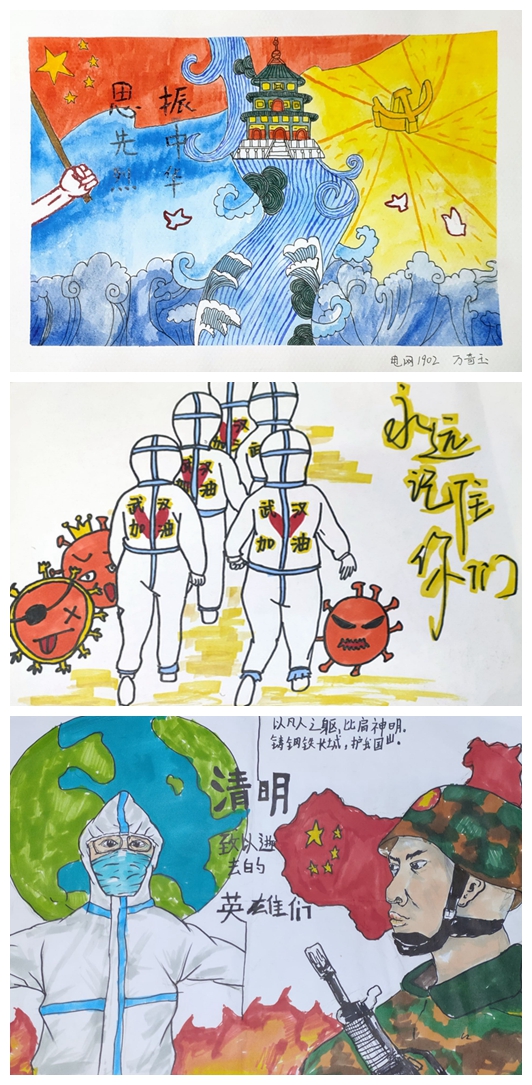 在一篇篇的征文里,参赛者客观真实的讲述逝去先烈和抗疫英雄们的英勇故事;或表达对他们的爱戴尊敬;或感情真挚的表达对祖国的热爱。一幅幅绘画作品,恰到好处的配色让它们更加栩栩如生,仿佛先烈们的故事就发生在眼前。