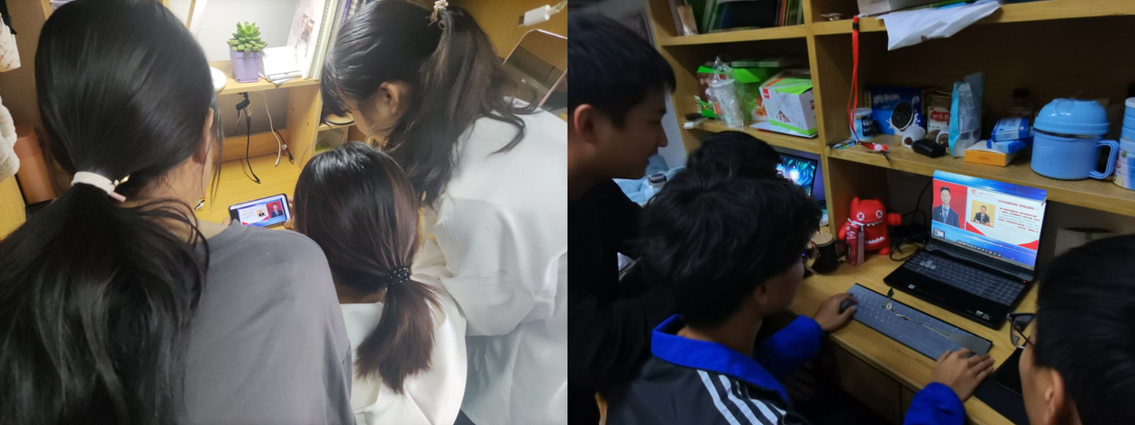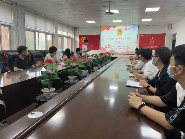 同学们集体回顾第一堂“同上党史思政大课”的内容,自发进行学习讨论,根据第二堂课的主题展开交流,显示了极高的学习热情。14:00,直播正式开始,第二堂课:“同上新中国史思政大课”邀请了天津师范大学王雪超、上海师范大学张志丹、复旦大学肖存良三位教授进行宣讲,学员们全神贯注,认真聆听三位教授对新中国百年来发展历程的动情讲述,深切感受新中国从站起来、富起来到强起来的历史性飞跃。观看学习结束后,同学们纷纷发表感悟。“为有牺牲多壮志,敢叫日月换新天。”无数的前人先辈在党的召唤之下汇聚起来,为国的发展出谋划策,为党的明天添砖加瓦,在废墟中建设起这片充满奇迹和希望的土地。作为新时代优秀青年学子,要学好“四史”,以史鉴今,传承红色力量,和现实实践相结合,立足当下、紧跟时代步伐,为中华民族伟大复兴添砖加瓦。