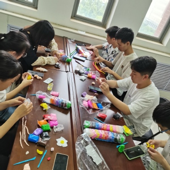 此次活动包括“感受古韵”、“心灵手绘衣-扎染”、“填色解压,模板绘画”和“开心灵之花,塑真实自我”四个部分。其中“感受古韵”给同学们分发了纸扇以及颜料等彩绘用具,根据自己意愿画出或写出心中所想的内容;“心灵手绘衣-扎染”通过DIY白色衣服上的色彩和图形,描绘出同学们多彩的大学生活;“填色解压,模板绘画”和“开心灵之花,塑真实自我”活动通过模板填充颜色、泥塑DIY的形式来表达自己的内心想法,释放心理压力。