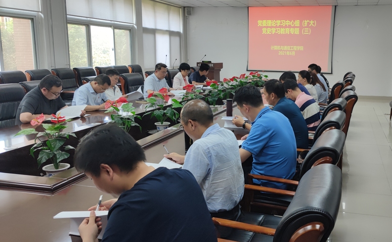 6月10日,计算机与通信工程学院在计算机楼213室召开党委理论学习中心组(扩大)党史专题学习会。学院党委理论学习中心组成员,各支部书记和系部主任参加学习,会议由院党委书记宋文军主持。