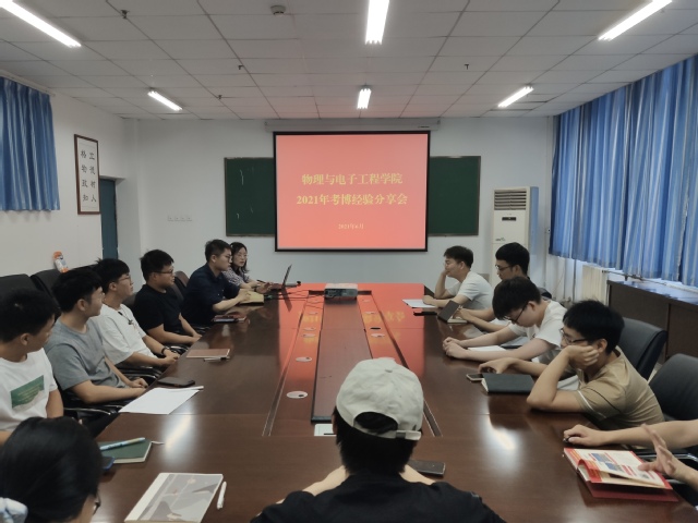 6月18日上午,物理与电子工程学院在四教楼510会议室举办考博经验分享会。全体研究生参与活动,研究生辅导员王伟夙主持会议。