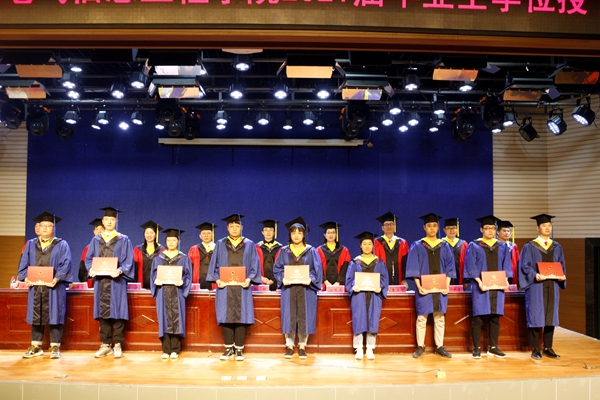 在欢快的乐曲声和现场师生热烈的掌声中,学院先后为获得硕士学位的全体研究生毕业生,获得学士学位的全体本科毕业生援正流苏并颁发学位证书。