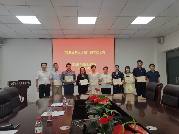 为庆祝中国共产党成立100周年,扎实推进党史学习教育, 6月29日下午,计算机与通信工程学院在学院楼213举行“百年党史人人讲”微党课大赛活动,学院党史学习教育领导小组成员参加活动并担任评委。