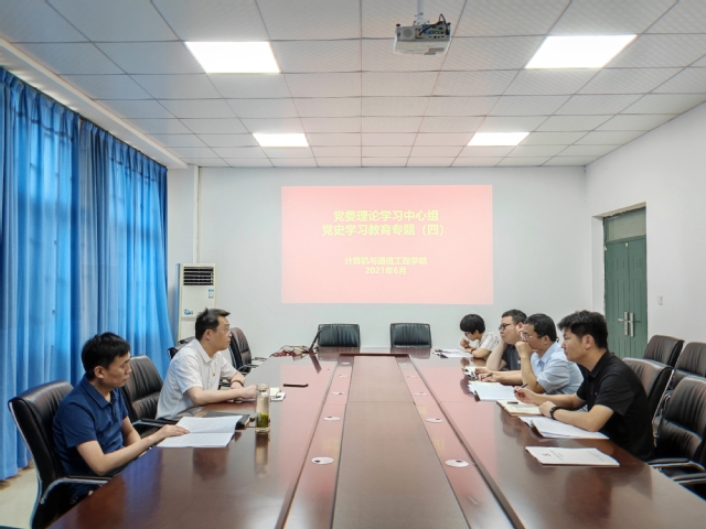 6月29日,计算机与通信工程学院在计算机楼226室召开党委理论学习中心组党史专题学习会。学院党委理论学习中心组成员参加学习,会议由院党委书记宋文军主持。