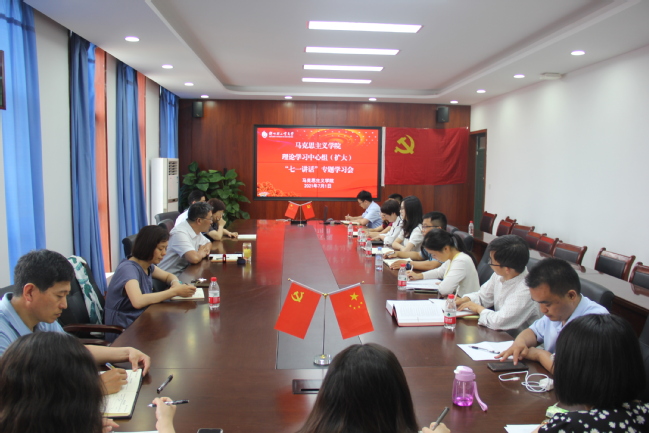 7月1日,马克思主义学院在学院会议室召开理论学习中心组(扩大)学习会,专题学习习近平总书记在庆祝中国共产党成立100周年大会上的讲话。学院总支委员、党支部书记、教师及研究生代表等20余人参加会议。会议由党总支书记马寒主持。