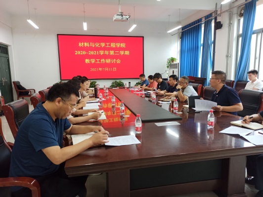 为切实提高教育教学质量和人才培养水平,7月11日上午,材料与化学工程学院在材化楼222会议室召开了2020~2021学年第二学期期末教学工作研讨会。副校长方少明教授、学院班子成员、系部(中心)负责人、校院两级督导成员及教师代表等30余人参加了会议,会议由副院长杨许召主持。