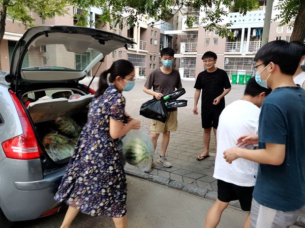 学院老师为同学们分发了西瓜和羽毛球拍等健身器材。深入细致地了解了他们在二区学习、住宿、饮食等情况,详细询问了同学们在生活、学习的困难情况,还提醒同学们要增强安全防范意识,保持室内清洁以及日常通风。做好个人安全和疫情防护,确保人身安全和财产安全。