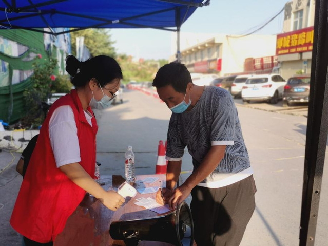 2021年8月11日,马克思主义学院2019级研究生张世英主动报名参加新郑市孟庄镇口张村组织的志愿服务活动。她的工作主要是在值班点给进出村民测量体温、查验健康码、登记外来人员信息等,以实际行动为防疫工作助力,为战“疫”工作贡献自己的力量。在志愿服务中,她深刻地体会到了基层工作者的艰辛,也感受到作为一名志愿者参与疫情防控工作的光荣感和责任感,她说到:“疾风劲草见忠诚,推动落实勇担当。抗疫工作,人人有责。为了在党的领导下,再次打赢疫情防控阻击战,我愿意挺身而出、英勇奋斗,为抗疫贡献自己的一份微薄之力,为自己、更为人民群众的生命健康,交上一份满意的答卷!”