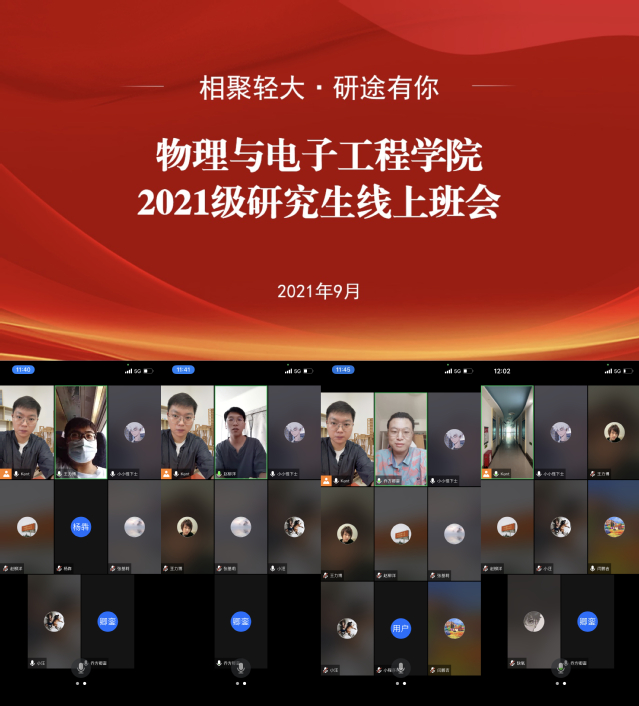 9月10日上午10点,物理与电子工程学院召开2021级研究生线上班会,研究生辅导员王伟夙及全体2021级研究生参加了会议。