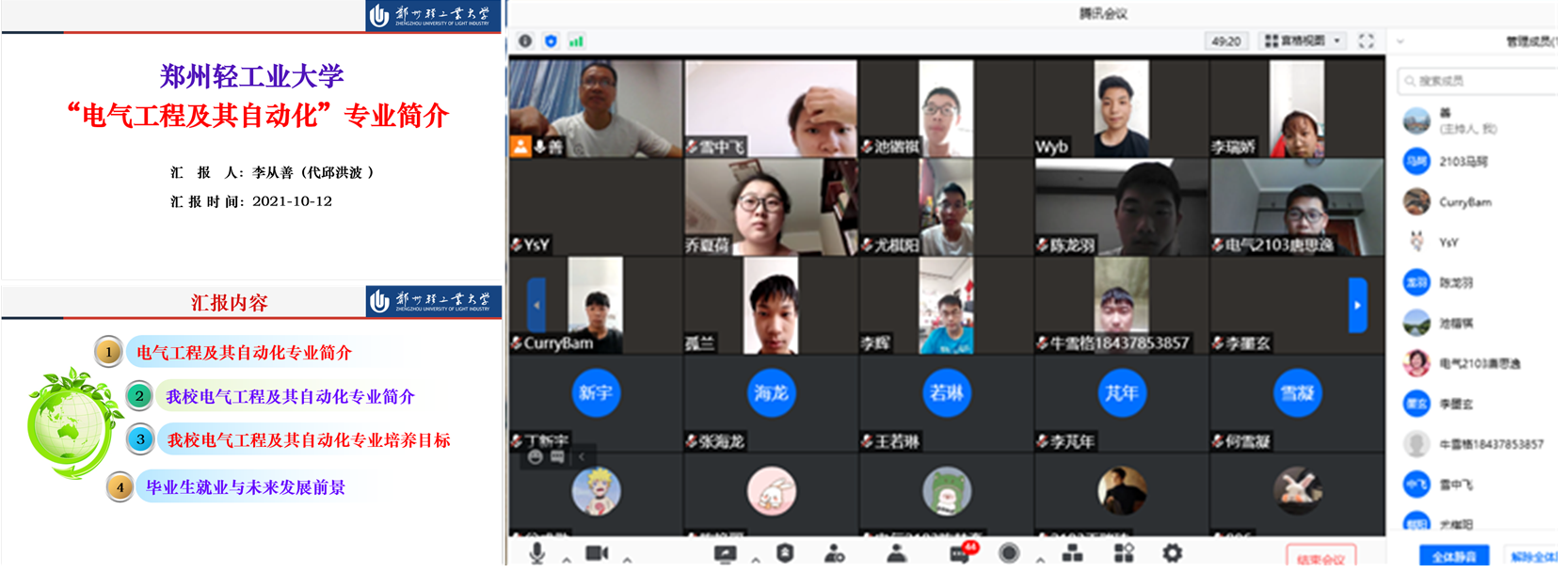 9月12日上午9时30分,电气信息工程学院电气工程系于线上召开2021级本科生新生见面会,电气工程系全体教师和2021级全体电气工程及其自动化专业本科生参加了本次会议。会议由电气工程系副主任李从善主持。