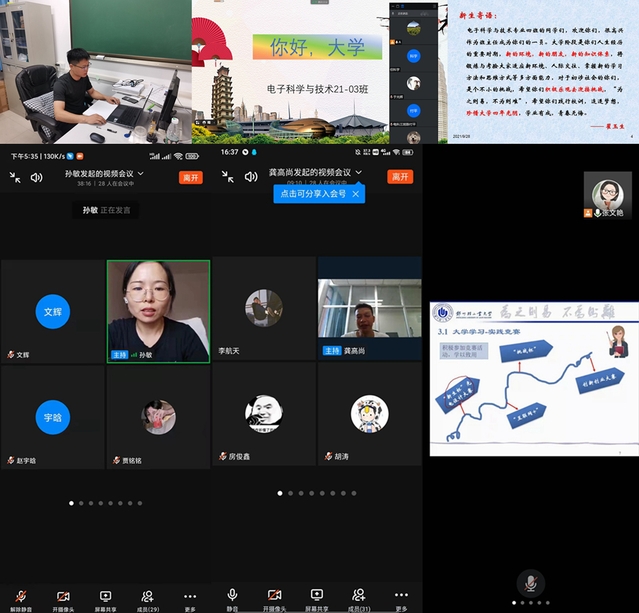 为扎实巩固新生入学教育效果,充分发挥班主任的协同育人作用。9月8日起,物理与电子工程学院全体2021级新生班主任,通过微信、QQ、腾讯会议等形式,以班级为单位陆续召开2021级新生线上班会。