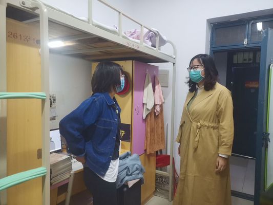 在走访过程中,学院党委副书记王艳军与返校学生亲切交谈,并重点询问了解了从东风校区搬迁至科学校区就读的2020级学生以及2021级专升本新生的生活适应、开学准备、学习规划等情况,提醒同学们尽快调整心情,合理安排学习时间,以良好的精神状态投入新学期的学习生活中,并反复叮嘱同学们一定要高度注意防盗防骗,保护好个人财产。此外,辅导员们逐一走访自己所带学生宿舍,与同学们亲切交谈,了解同学们的假期生活、返校复课、职业规划等情况,并对学生宿舍安全、环境卫生、安全设施等情况进行了认真细致的检查,并提出了明确要求,以确保宿舍安全有序、整洁干净,用心营造一个良好的宿舍学习、生活氛围。