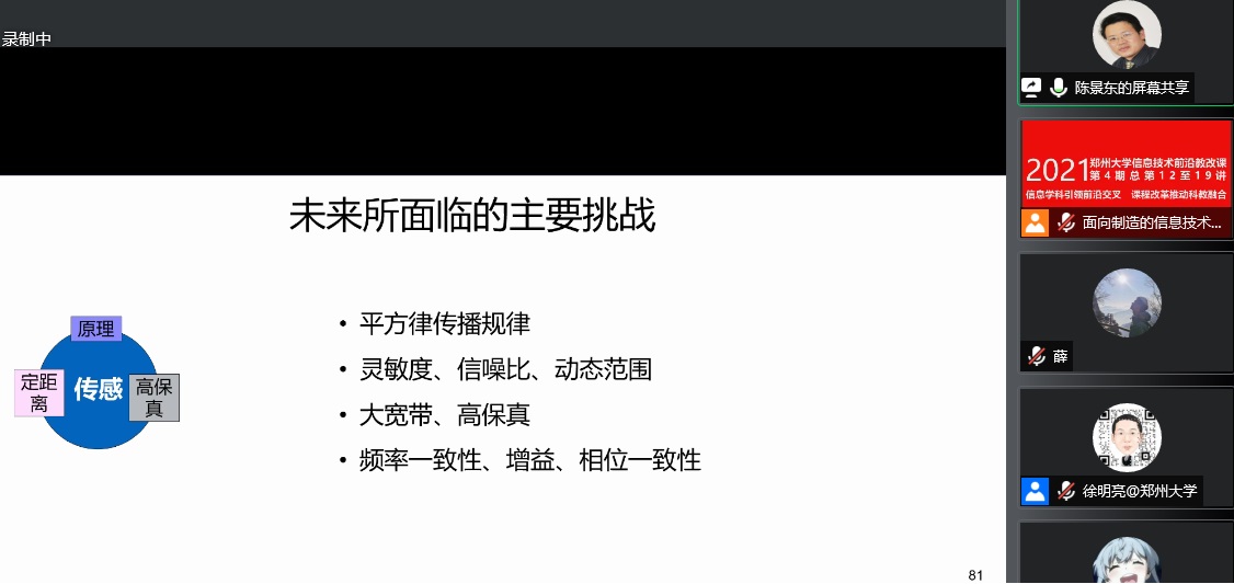 由中国人工智能学会主办,CAAI青工委、郑大洛阳校区(现代制造河南实验室)、郑州轻工业大学计算机与通信学院 联合承办的河南省教改课重点项目“信息技术前沿”第4期(总第12至19讲)学术报告,于10月9日通过线上形式进行,邀请北大、中科大、南开、西北工大、北交大、南航、华东理工的学术大咖连续做8场精彩报告,计算机与通信工程学院组织2021级研究生以个人、组队等方式进行学习,并撰写学习心得和收获,同时2020级和2019级研究生也以不同形式参加了此次学术报告。