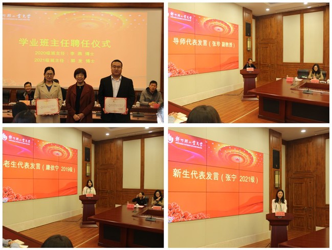 典礼在雄壮的国歌声中拉开序幕。硕士研究生导师代表张珍,2019级研究生代表康依宁、2021级研究生代表张宁分别作了主题发言。院长闻英代表学院为学业班主任李燕、郭发颁发聘书。