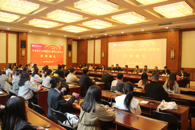 10月17日上午,马克思主义学院在科学校区双创中心第一会议室举办2021级硕士研究生开学典礼。学院领导班子成员、硕士生导师代表、学业班主任、研究生党支部书记、全体研究生参加典礼。典礼由党总支书记马寒主持。