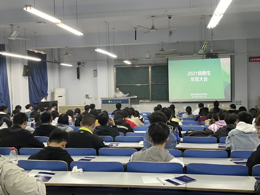 10月21日中午,数学与信息科学学院组织召开2021级新生年级大会,新生辅导员韩笑及2021级全体新生参加会议。