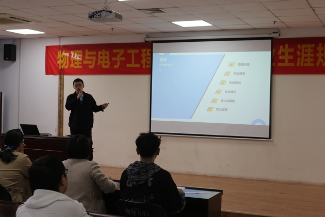 10月27日中午,物理与电子工程学院在四教楼503室举办了大学生职业生涯规划大赛。学院党委副书记李玲、辅导员担任了评委。