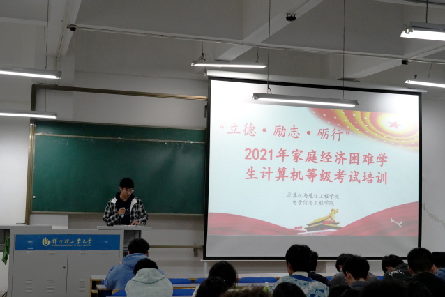 本次活动主要以家庭经济困难学生计算机等级培训为主,特别邀请了计算机学院及工程训练中心专业教师进行专业讲解。培训会伊始,主持人马贝贝老师向在座的同学们简明地介绍了计算机技术在社会中的地位以及其应用在社会市场的明显优势。随即由专业老师对大家进行了计算机等级考试的四步全方位讲解,即考试介绍、考试内容、题型解析和备战考试。相信同学们参加了本次培训会后都受益匪浅,本次培训会也在同学们热烈的掌声中圆满结束。