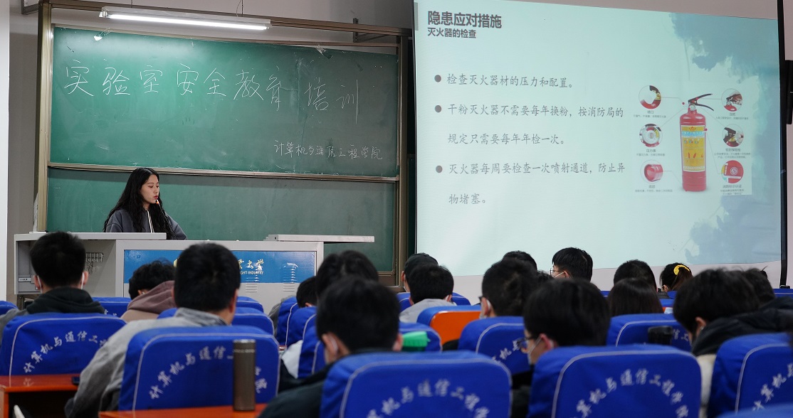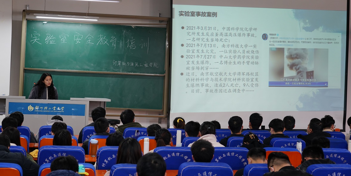 为了加强实验室安全管理工作,预防安全事故发生,保障正常教学科研秩序的有序进行,确保广大师生人身安全和校园和谐稳定,12月2日计算机与通信工程学院在计算机楼217教室开展了实验室安全教育宣讲会,本次培训会由计算机与通信工程学院研究生会主办,2020级和2021级全体研究生及本分本科学生参加了本次宣讲会。
