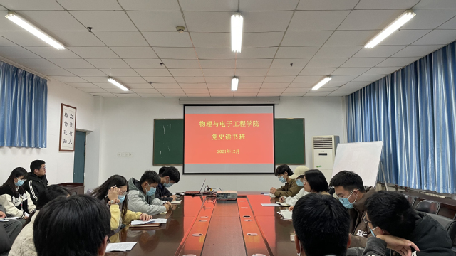 为扎实推进党史学习教育,引领青年学生坚定理想信念。近期,物理与电子工程学院在四教楼510会议室举办了党史学习教育读书班总结活动。学院团委书记周芳华和读书班成员参与了此次活动。