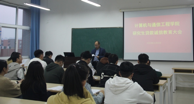 为进一步加强学生诚信教育,做好2021年助学贷款工作,落实国家资助政策宣讲,2021年11月10日下午5点,计算机与通信工程学院2021年研究生贷款签约和诚信教育大会在计算机学院楼413教室举行。赵进超老师、孙梦瑶老师以及全体贷款研究生同学参加会议。