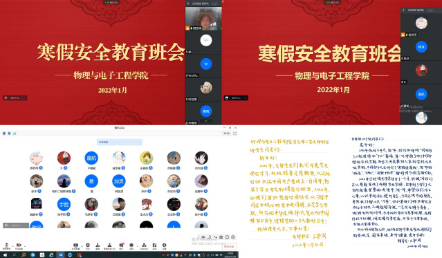 为了做好全体学生的假期日常教育,强化学生安全意识。近日,物理与电子工程学院组织各年级开展了寒假安全教育。