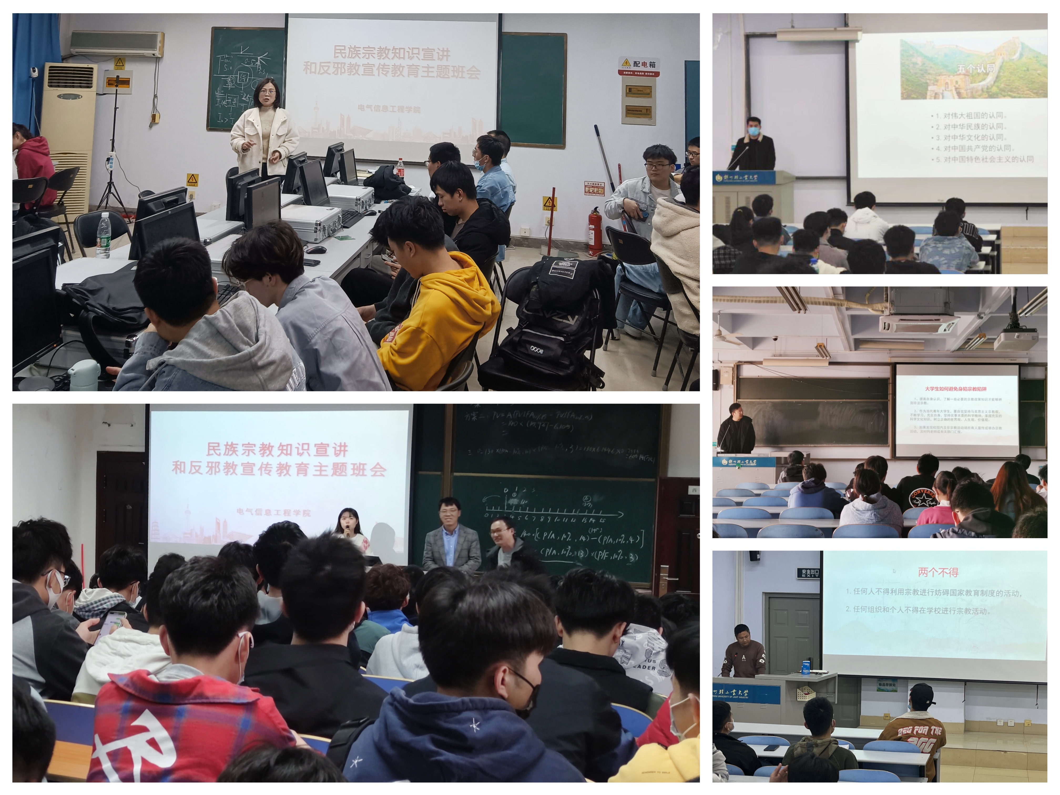3月1日至3月4日,电气信息工程学院在各年级面向全体学生开展“民族宗教知识宣讲和反邪教宣传教育”主题班会。各年级辅导员主持班会。