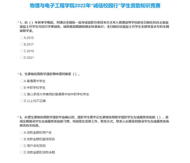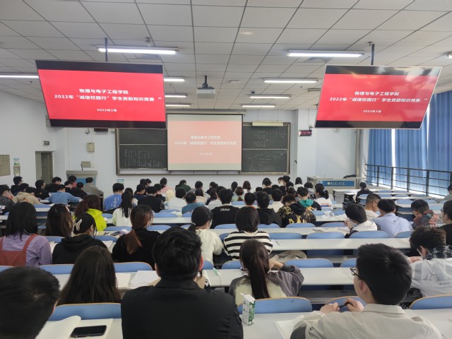 3月9日,物理与电子工程学院在两校区开展“诚信校园行”学生资助知识竞赛初赛,学院全体学生参与了活动。