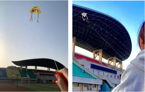 本次活动流程包括风筝材料包领取以及制作、签名墙合照、放飞风筝三个部分。工作人员为同学们准备了三类风筝的材料包,充分考虑到了同学们的不同需求,准备了空白风筝、填色风筝、异形风筝等。活动期间,同学们慧心巧思,优秀作品层出不穷:有的同学在风筝上题“一研为定,一战成硕”的字样,寄托了考研必胜的决心;有的同学手绘出憨态可掬的“冰墩墩”,为冬奥健儿们喝彩;还有的同学画出《海绵宝宝》中的三位卡通人物,体现出他们内心的童真……同学们举起自己满意的作品,站在签名墙旁,用相机记录下美好的时刻。活动最后,大家牵着手中的风筝线,奔跑在春日的午后,放飞这专属的快乐。