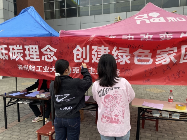 志愿活动分为有奖答题和签名两个环节。答题环节,题目设置为单选题和多选题两个题型,对于答题正确率高的同学,马院的志愿者们为大家发放了小礼品。活动吸引众多学生纷纷参与答题,参与热情高涨。通过答题,让参与人员更好地熟悉低碳环保方面知识,树立低碳环保理念。答题学生们在现场印有“树立低碳理念 创建绿色家园”的条幅上留下个人签名,表明自己将积极践行自然、环保、节俭、健康的思想和生活理念,做一个低碳环保达人。参加活动的同学表示,此次活动很有意义,自己要将此次学习收获内化于心,外化于行,进一步学习和弘扬中华民族勤俭节约的优良传统和社会主义新风尚。