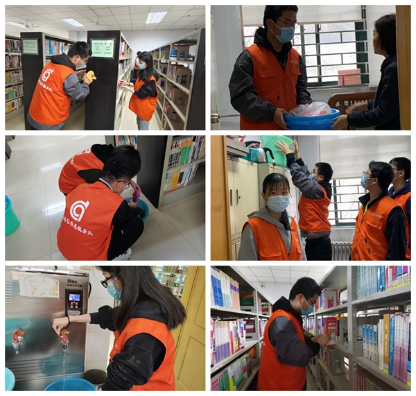 活动开始前,志愿者们先和图书馆值班老师进行了积极的沟通,并领取劳动工具、了解具体整理区域。在负责同学带领下,大家两两分组开始有序工作。活动过程中,为了不影响图书馆里面的同学们学习、阅读,大家都努力保证在轻拿轻放的前提下,做好本次志愿工作。即使工作量大,但无论是书架上需要擦拭的灰尘,还是需要整理的书籍,大家在清理好每一个书架的过程中,都真切地感受到了志愿和奉献的快乐。