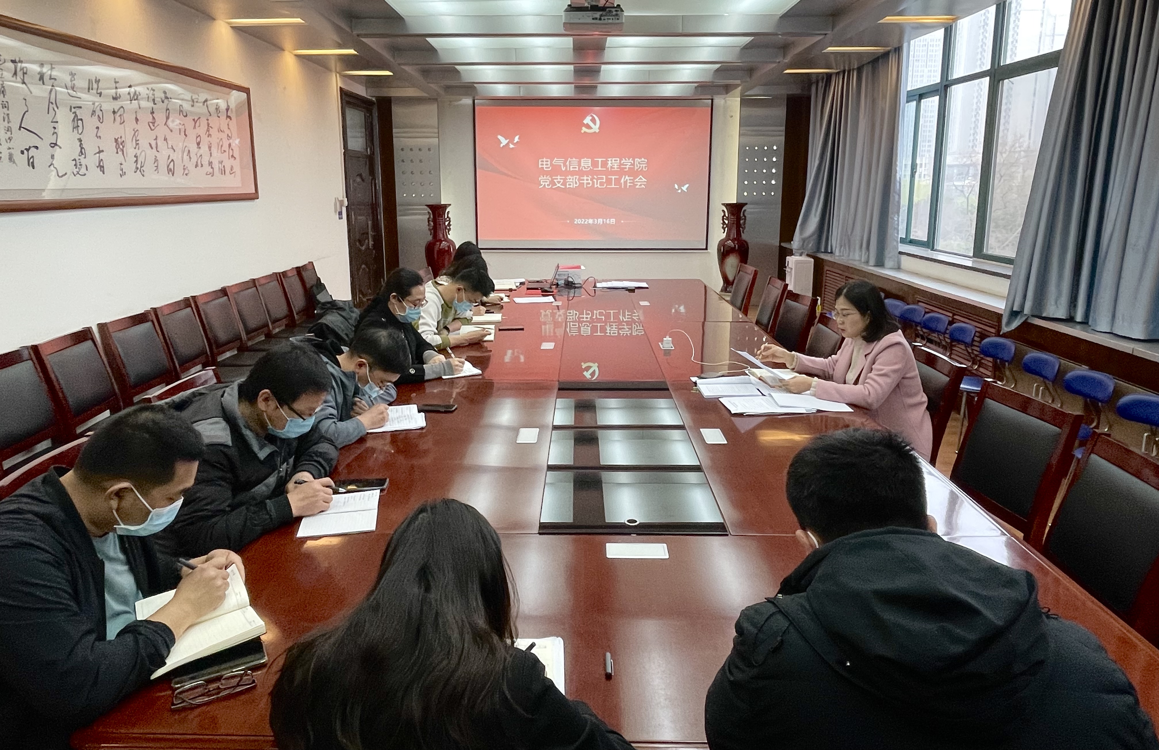 3月16日下午,电气信息工程学院在西二楼301会议室召开全体党支部书记工作会议。学院党委副书记万慧杰、组织员及全体党支部书记参加。会议由党委副书记万慧杰主持。
