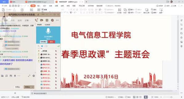 3月14日至3月23日,电气信息工程学院以班级为单位在线上以多种形式开展“春季思政课”主题班会活动。