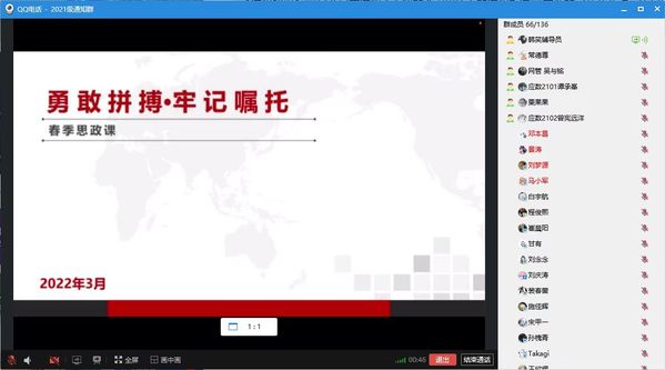 3月24日至3月26日,数学与信息科学学院通过线上线下相结合的方式开展系列“春季思政课”主题班会活动,全体学生参加。