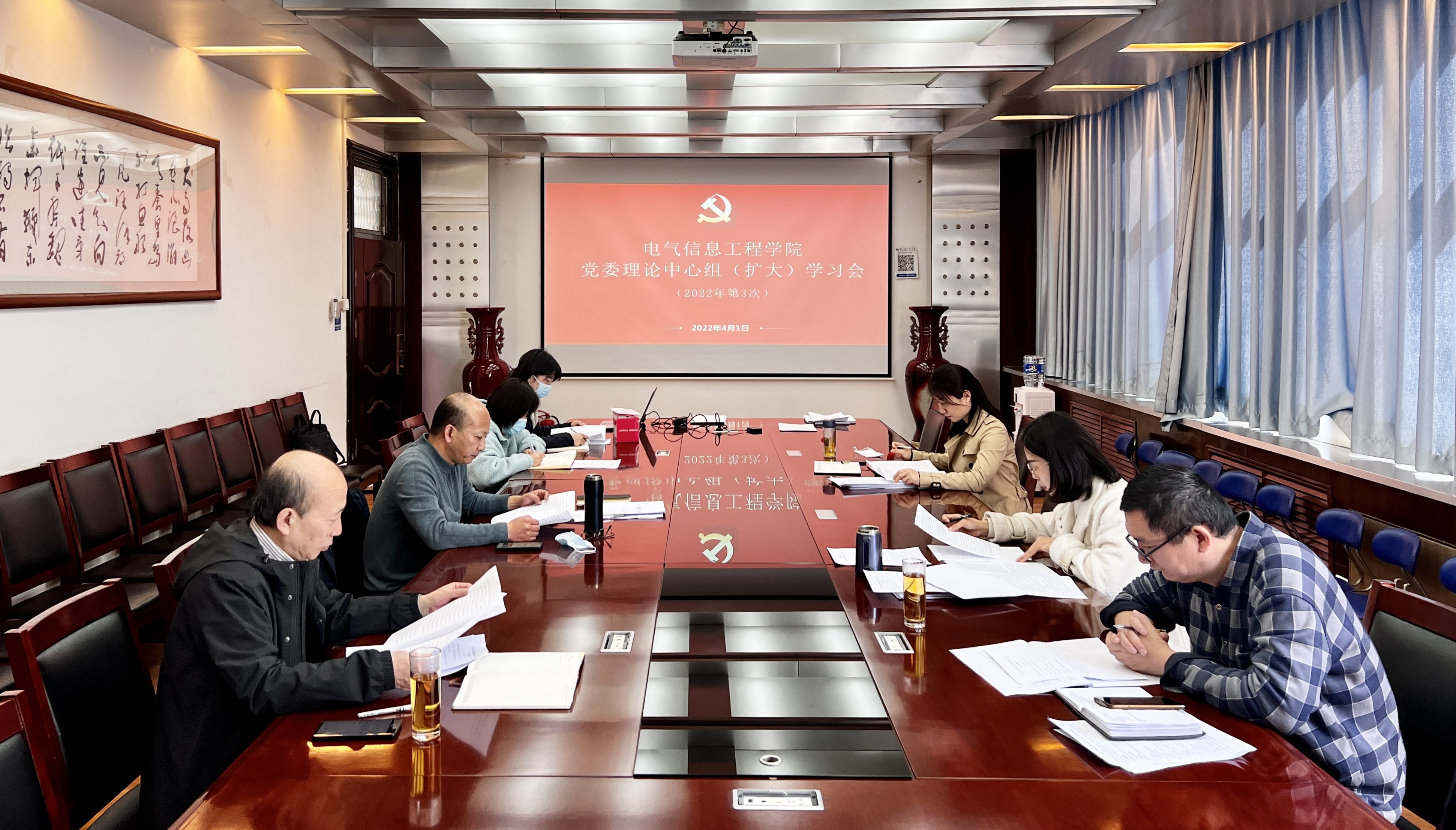 4月1日上午,电气信息工程学院在西二楼202召开党委理论学习中心组(扩大)学习会议,专题学习思想政治工作。电气信息工程学院党委理论学习中心组成员、领导班子成员参加。会议由学院党委副书记万慧杰主持。