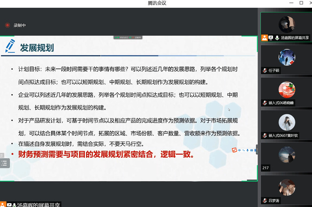 关于本次培训的主要围绕赛事解读,及如何短期内打造“挑战杯”优质项目开展。主讲教师从执行总结,项目背景,市场机会等方面入手,对于项目的设计和重点技术的应用进行了着重讲解,并且对大学生如何制作出高质量的项目做出解析。培训的内容十分丰富,不仅讲授了备赛及比赛技巧,还分享了一些具有参考价值的国赛金奖项目,同学们全身贯注的聆听,在其中收获到了关于比赛的宝贵经验与方法。
