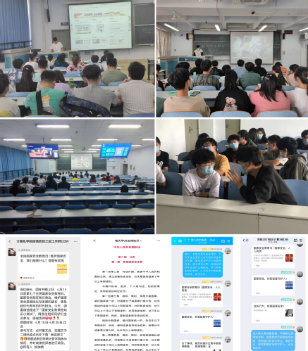 系列主题活动中,学院围绕国家安全、消防安全、人身安全、心理健康、疫情防控、突发事件应对等开展专题宣传教育:以班级为单位组织召开“树牢总体国家安全观,青春喜迎党的二十大”主题团日活动、反邪教警示教育主题班会等,观看各类法治宣传视频,组织学生进行研讨交流;积极引导学生参与“国家安全和保密知识小测试”,以考促学,让同学切实感受到国家安全与自己的生活息息相关,要切实履行好保守国家秘密的义务和责任;通过“两微一端”、QQ群、微信群等新媒体推送一批国家安全、疫情防控等宣传教育内容的专题页面、音视频、图解,以同学们喜闻乐见的形式进行法治宣传教育,在学生中形成知法、懂法、守法的良好氛围。