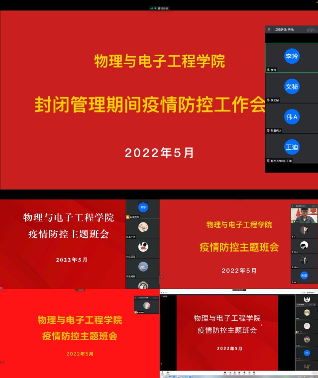 5月6日,物理与电子工程学院全体辅导员线上召开了疫情防控主题班会,学院全体学生参与了会议。