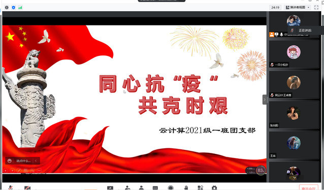 活动中,主持人首先带领大家一起学习了关于疫情防控的各级会议精神和最新防控政策,深刻指出了当前疫情防控形势的复杂性、艰巨性、反复性和抓好疫情防控工作的极端重要性,使师生们能够提高认识、保持警醒,从严从紧、从细从实抓好情防控工作。然后以PPT、短视频等方式呈现了此次疫情发生以来,学院团组织组建的疫情防控志愿服务队在学生思想疏导、文明劝导、核酸检测引导等方面所提供的各项志愿服务。之后,优秀志愿者代表依次发言,向广大师生分享了参与疫情防控志愿服务的亲身经历和个人感触。活动最后,同学们交流讨论自己的感悟,表示一定严格遵守疫情防控的各项规定,积极配合学校疫情防控工作,坚决守好这来之不易的防控成果。