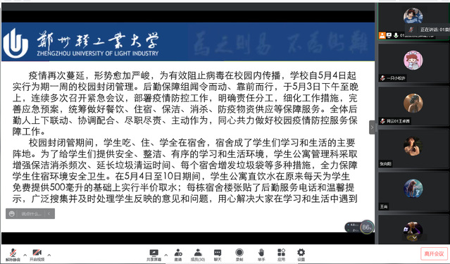 为深入贯彻落实习近平总书记关于疫情防控工作的重要讲话和指示精神,发挥团员青年的先锋模范作用,增强战胜疫情的信心和决心,计算机与通信工程学院(电子信息工程学院)于5月6日-10日以线上直播的方式开展“青春寻访·我身边的防疫先锋”经验分享活动。