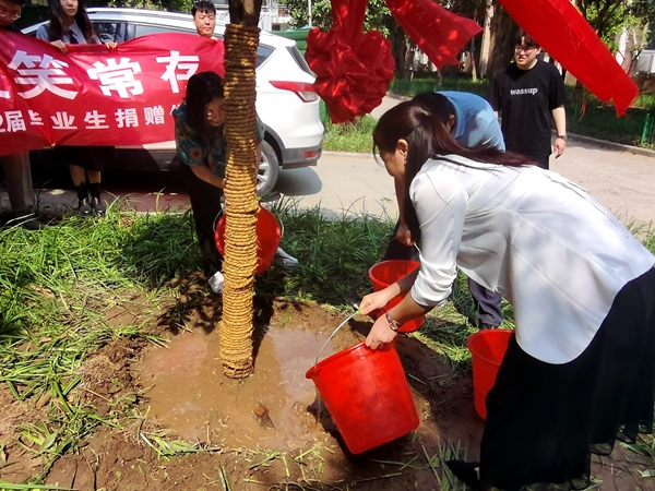 为母校捐赠树木,表达了莘莘学子对母校的一片真挚的祝福和深厚的感情,同学们表示:大学校园留下了我们成长的脚步,这里藏着我们数不清的青春故事,这棵桂花树就像我们的心一样,永远停留母校,把一缕幽香留在母校。离开学校之后,我们会继续奋斗,为母校增光添彩。