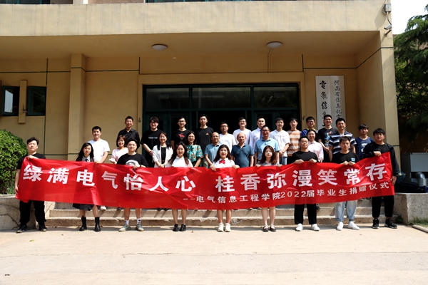 5月25日,电气信息工程学院在学院门前广场举行2022届毕业生捐赠仪式。学院党政领导班子,教师代表和2022届毕业生代表参加仪式。