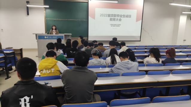 为进一步增强贷款毕业生的诚信意识、法律意识,做到认真履行国家助学贷款合同义务,诚信做人、诚信做事,2022年4月28日下午15点30分,计算就与通信工程学院(电子信息工程学院)在计算机楼118召开了资助政策两节课之毕业生资助政策宣传课暨2022届贷款毕业生诚信教育大会。学院党委副书记王艳军书记,资助负责老师马贝贝老师、王建新老师以及2022届全体贷款毕业生参加会议。