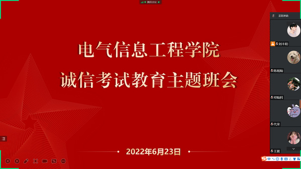 近日,电气信息工程学院各年级组织召开期末诚信考试教育主题班会。学院党委副书记万慧杰、全体辅导员、全体学生参加了主题班会。